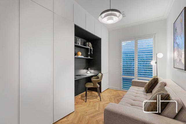 Upon entry, you're welcomed by chevron timber floors, soaring ceilings, and refined detailing. The considered floorplan offers both functionality and flexibility, featuring a dedicated home theatre and a versatile home office appointed with bespoke cabinetry and an integrated wardrobe—perfectly suited as an optional fifth bedroom. The indulgent master suite is positioned for privacy and showcases a custom walk-in robe, complemented by a luxe ensuite complete with a double vanity, dual shower, and refined finishes.