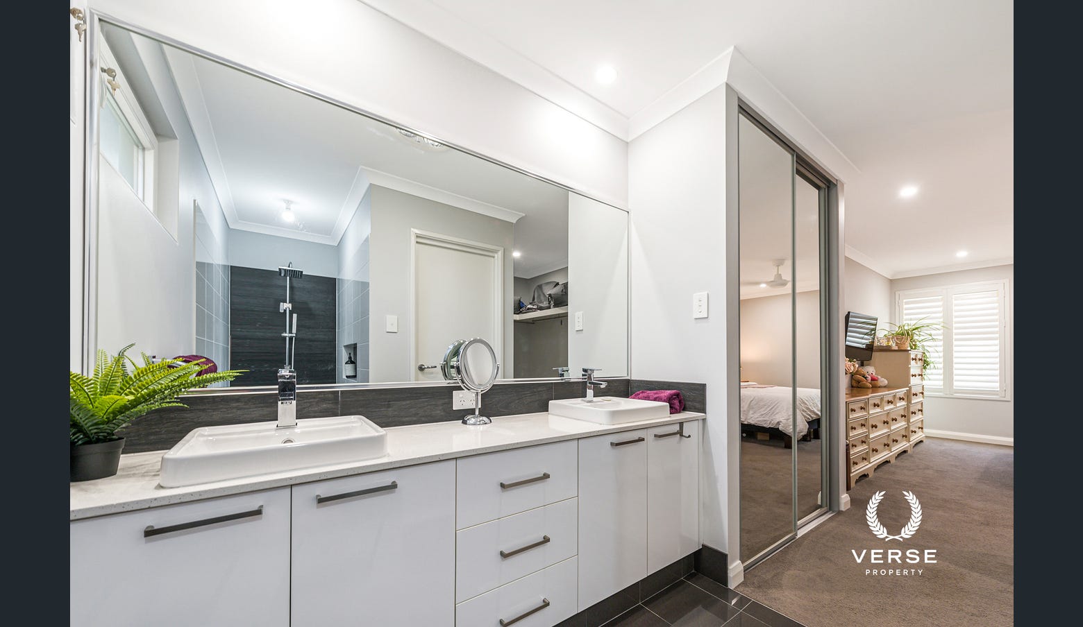 Primary Bedroom Suite: A luxurious retreat with a large walk-in wardrobe and a beautifully appointed ensuite featuring dual vanities and a sleek walk-in shower.