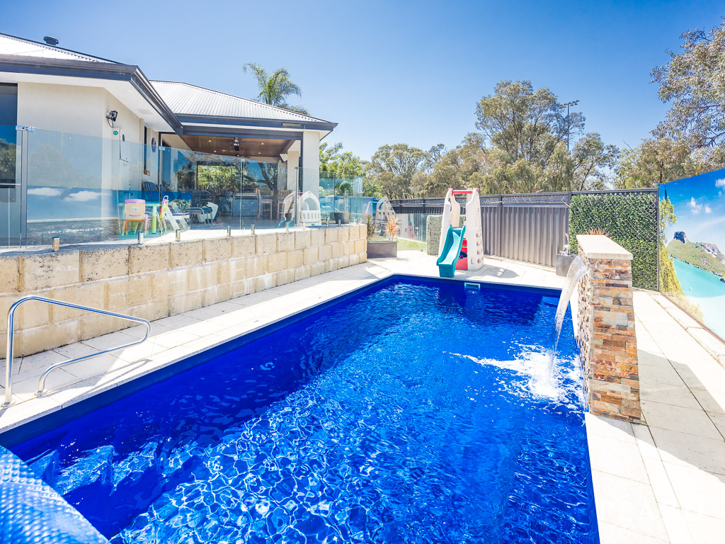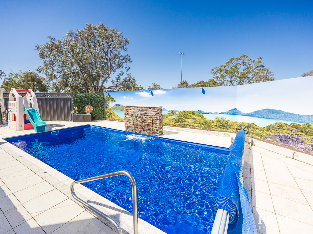 It all so breathtakingly overlooks a sunken yard and a shimmering below-ground swimming pool, with stone cladded waterfall, warmed by a heat-pump when you need it to be just the right temperature. A relaxing poolside courtyard, an external shower and a secure double lock-up garage help complete this amazing package, a rare find in this part of Woodvale!