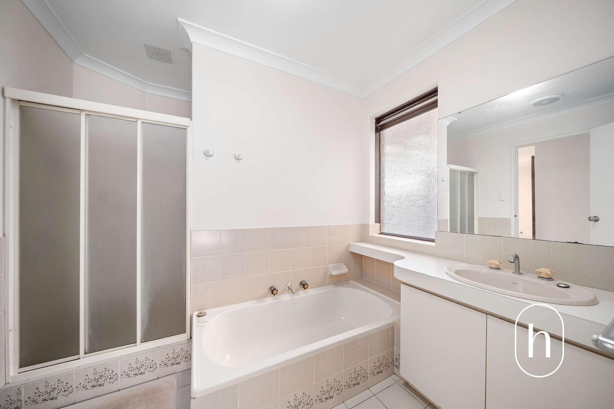 All three bedrooms feature built in robes and ceiling fans, with the master benefiting from separate his-n-hers robes as well as having access to the semi-ensuite bathroom – well-appointed with shower, separate bath and vanity.