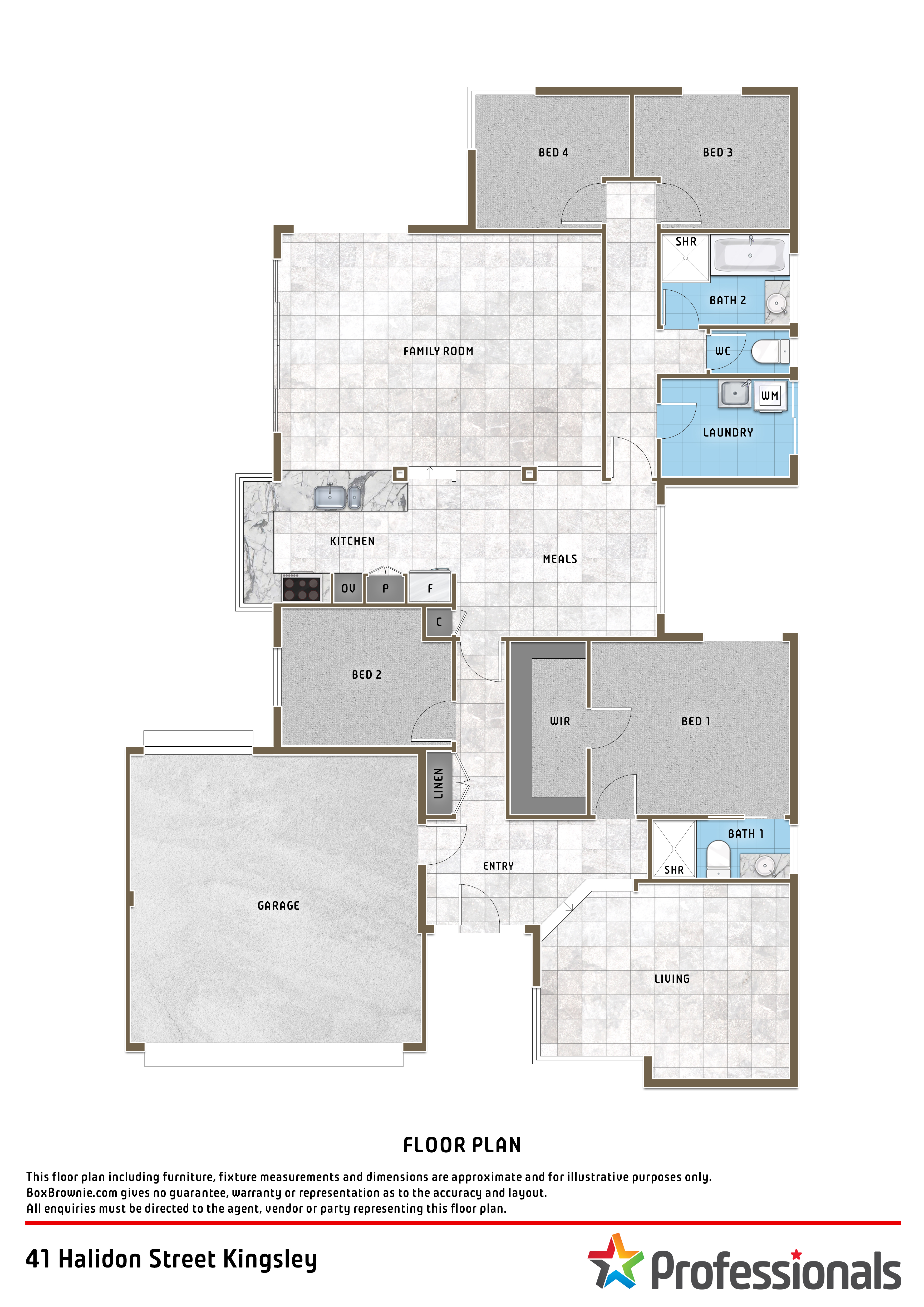 Additional Bedrooms: Bedroom 2 with built-in robes and built-in storage Bedrooms 3 and 4 with built-in robes and fans Bedroom 4 also features a Dakin split system