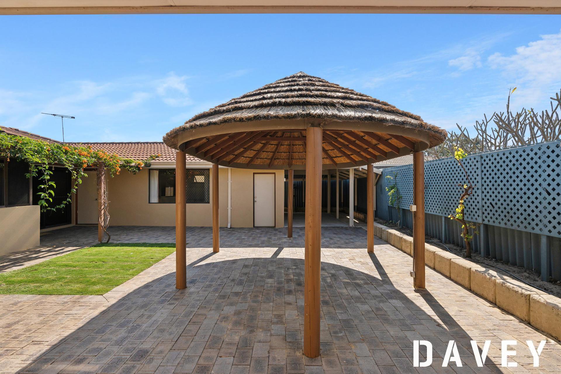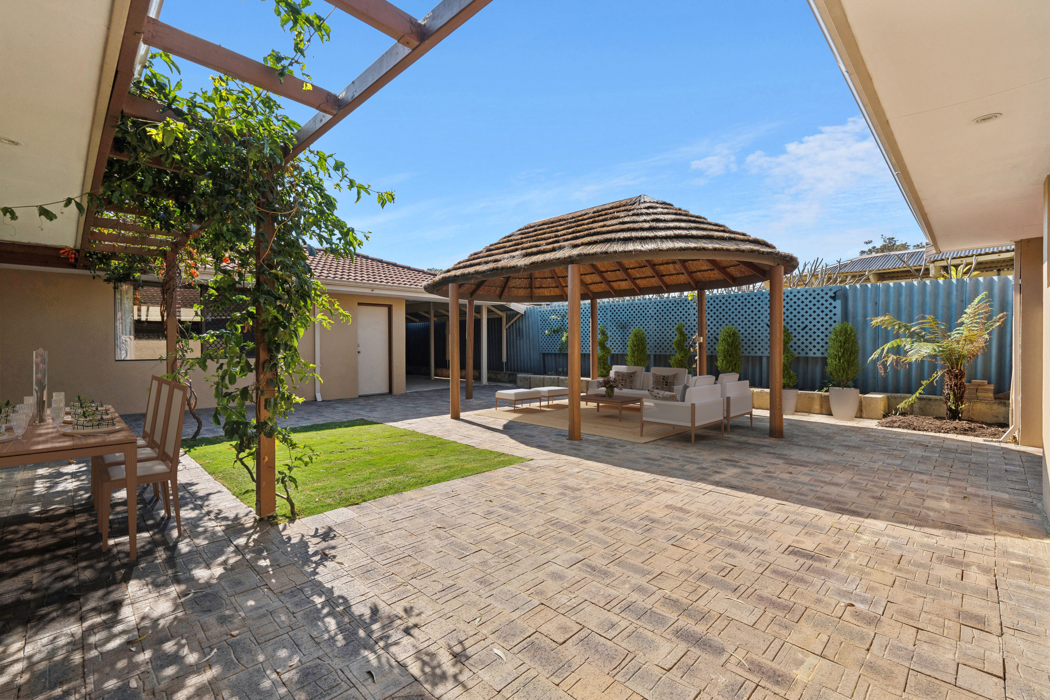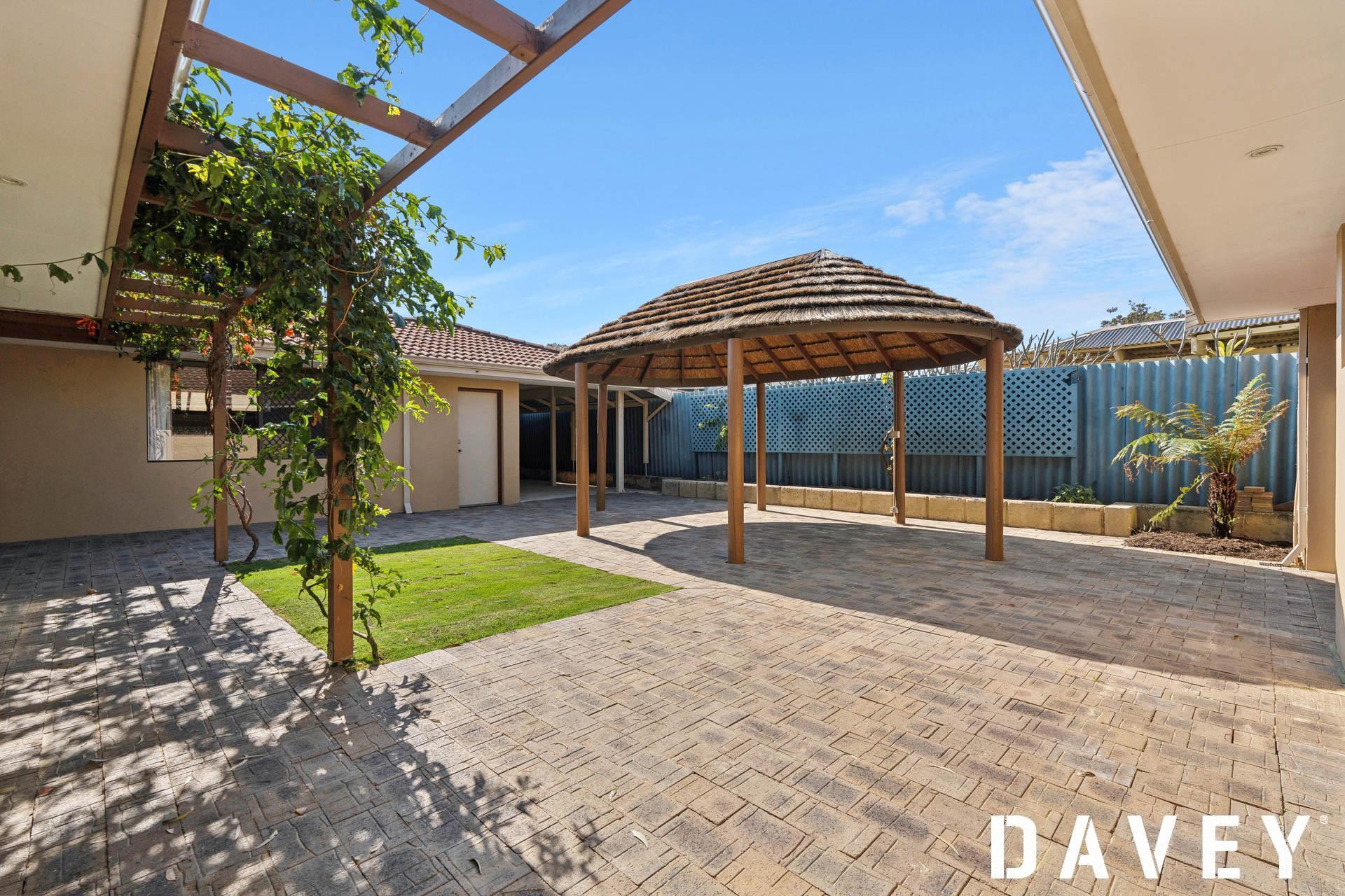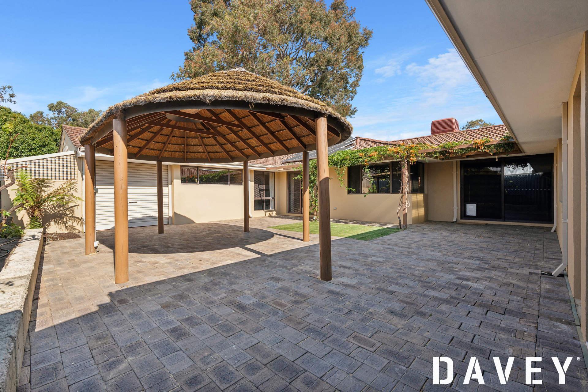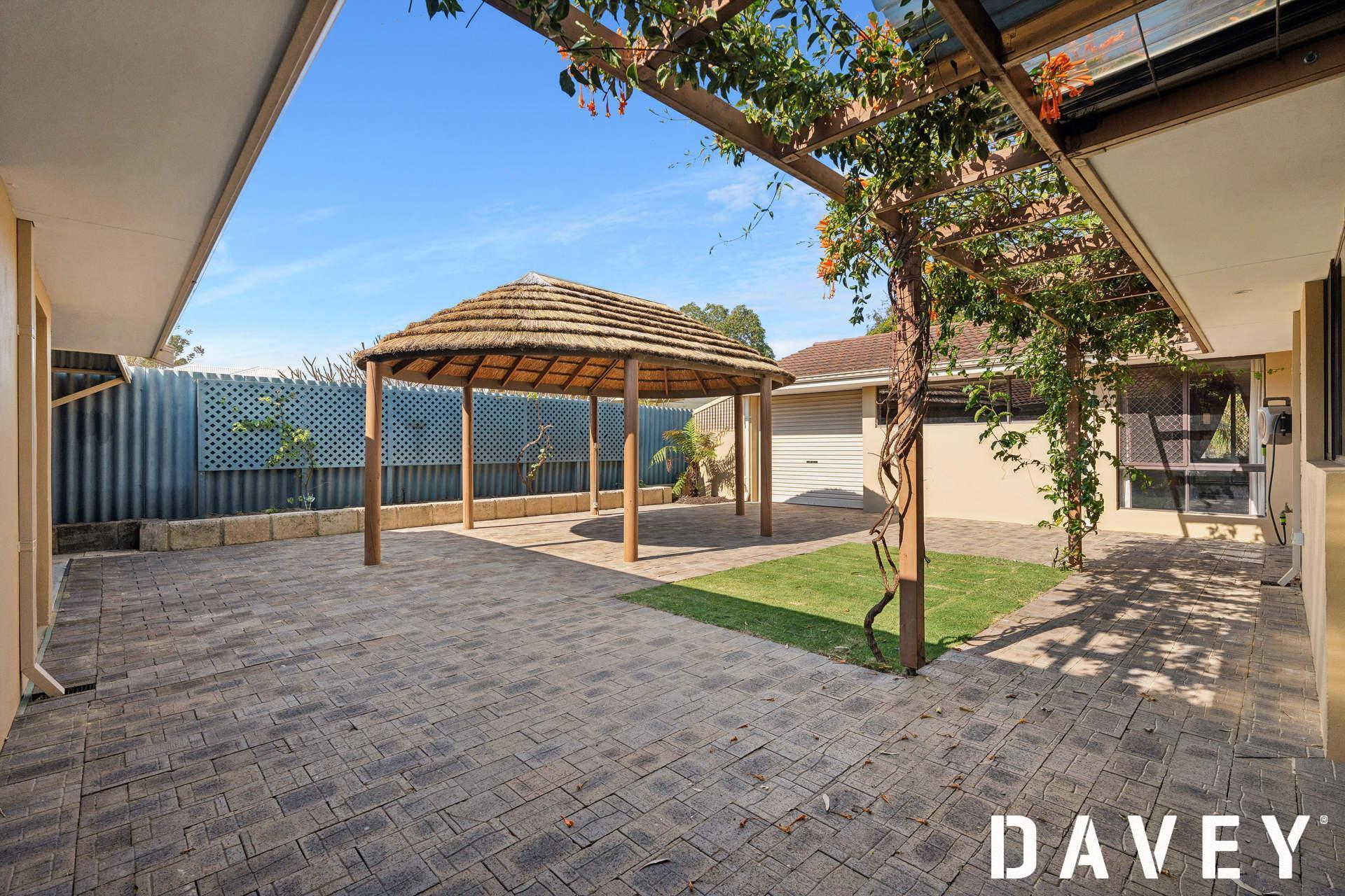 Off both the family and dining rooms sits a paved north-facing courtyard that, alongside a large Bali-style gazebo hut, encourages splendid outdoor entertaining.