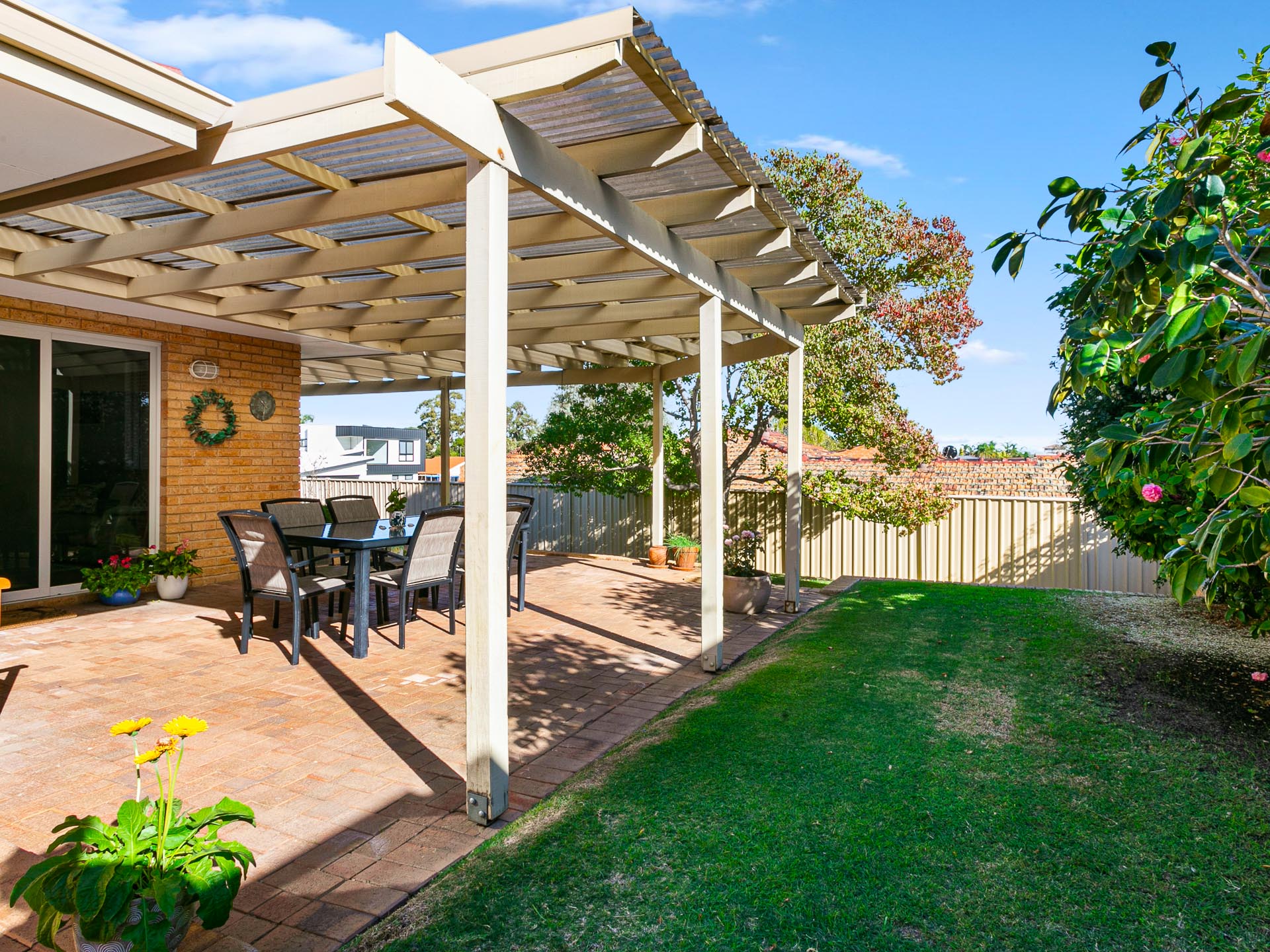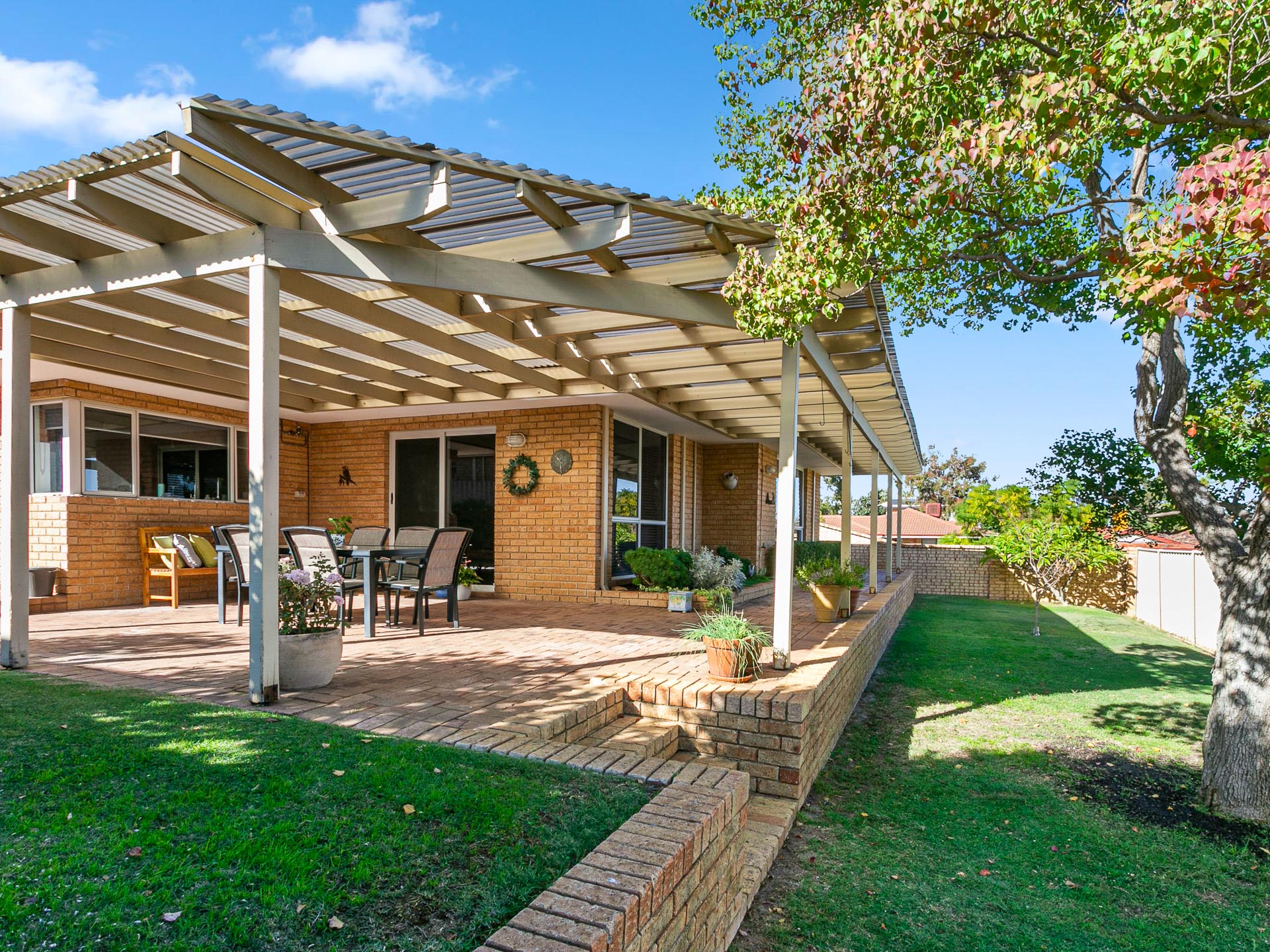 Comfortable, modern, charming. A beautifully maintained residence in the highly sought-after suburb of Kingsley. This charming home offers an inviting blend of style and practicality, starting with its timeless warmth and character. The landscaped front garden, framed by mature trees and lush greenery, creates a welcoming first impression. A spacious paved driveway leads to the double garage, providing ample parking for family and guests. The large backyard features an expansive covered alfresco area, perfect for outdoor entertaining, surrounded by manicured lawns and gardens for a private and serene outdoor retreat.